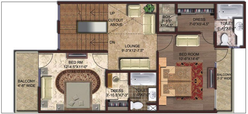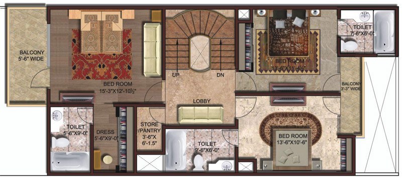 3 Bedroom + 2 Toilets | 1825 Sq.ft | On Request |